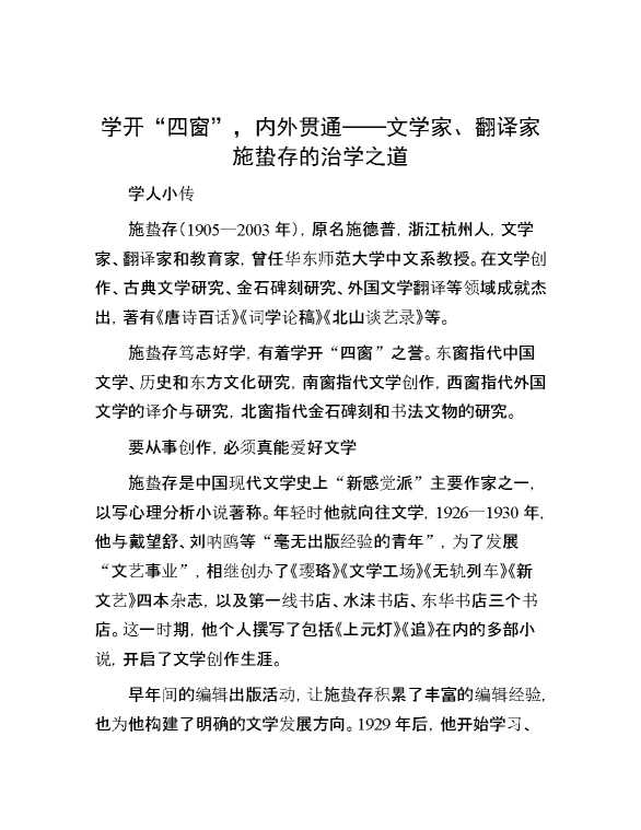 学开“四窗”,内外贯通——文学家、翻译家施蛰存的治学之道 2024-06-03 Word模板 97 购买前,请一定要先点击这里看看,欢迎持续关注,精彩模板每天推送 预览结束,本文件为word文档,一共6页,共2658字,请购买后,下载后查看 购买前,请一定要先点击这里看看,欢迎持续关注,精彩模板每天推送 资源下载下载价格29 RMBVIP免费升级VIP点击检测网盘有效后购买有任何充值和下载问题请加微信:xuexixuexi66 0 理论学习