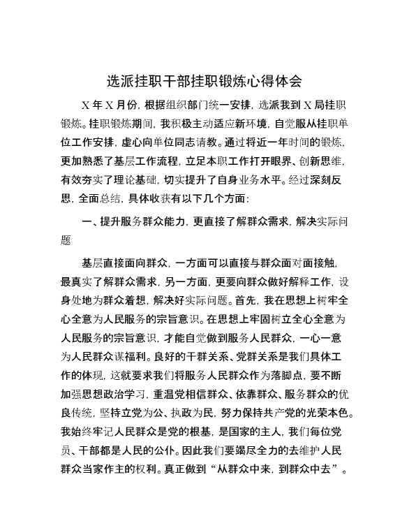 选派挂职干部挂职锻炼心得体会 2024-06-03 Word模板 93 购买前,请一定要先点击这里看看,欢迎持续关注,精彩模板每天推送 预览结束,本文件为word文档,一共6页,共2649字,请购买后,下载后查看 购买前,请一定要先点击这里看看,欢迎持续关注,精彩模板每天推送 资源下载下载价格29 RMBVIP免费升级VIP点击检测网盘有效后购买有任何充值和下载问题请加微信:xuexixuexi66 0 理论学习