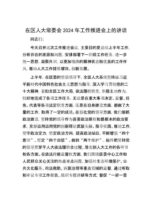 在区人大常委会2024年工作推进会上的讲话 2024-06-10 Word模板 98 购买前,请一定要先点击这里看看,欢迎持续关注,精彩模板每天推送 预览结束,本文件为word文档,一共12页,共5703字,请购买后,下载后查看 购买前,请一定要先点击这里看看,欢迎持续关注,精彩模板每天推送 资源下载下载价格29 RMBVIP免费升级VIP点击检测网盘有效后购买有任何充值和下载问题请加微信:xuexixuexi66 0 演讲发言