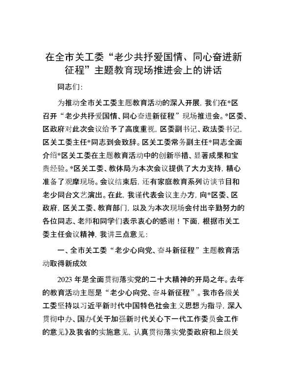 在全市关工委“老少共抒爱国情、同心奋进新征程”主题教育现场推进会上的讲话 2024-06-10 Word模板 108 购买前,请一定要先点击这里看看,欢迎持续关注,精彩模板每天推送 预览结束,本文件为word文档,一共14页,共7225字,请购买后,下载后查看 购买前,请一定要先点击这里看看,欢迎持续关注,精彩模板每天推送 资源下载下载价格29 RMBVIP免费升级VIP点击检测网盘有效后购买有任何充值和下载问题请加微信:xuexixuexi66 0 演讲发言
