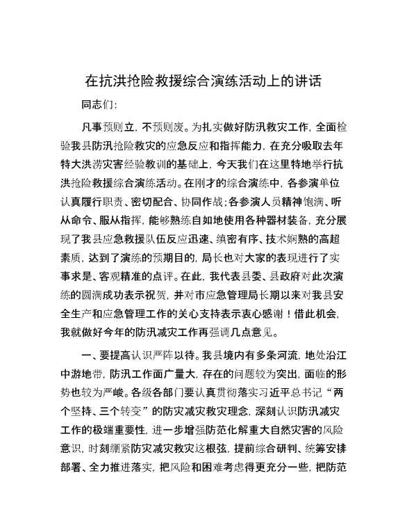 在抗洪抢险救援综合演练活动上的讲话 2024-06-10 Word模板 107 购买前,请一定要先点击这里看看,欢迎持续关注,精彩模板每天推送 预览结束,本文件为word文档,一共3页,共1453字,请购买后,下载后查看 购买前,请一定要先点击这里看看,欢迎持续关注,精彩模板每天推送 资源下载下载价格29 RMBVIP免费升级VIP点击检测网盘有效后购买有任何充值和下载问题请加微信:xuexixuexi66 0 演讲发言