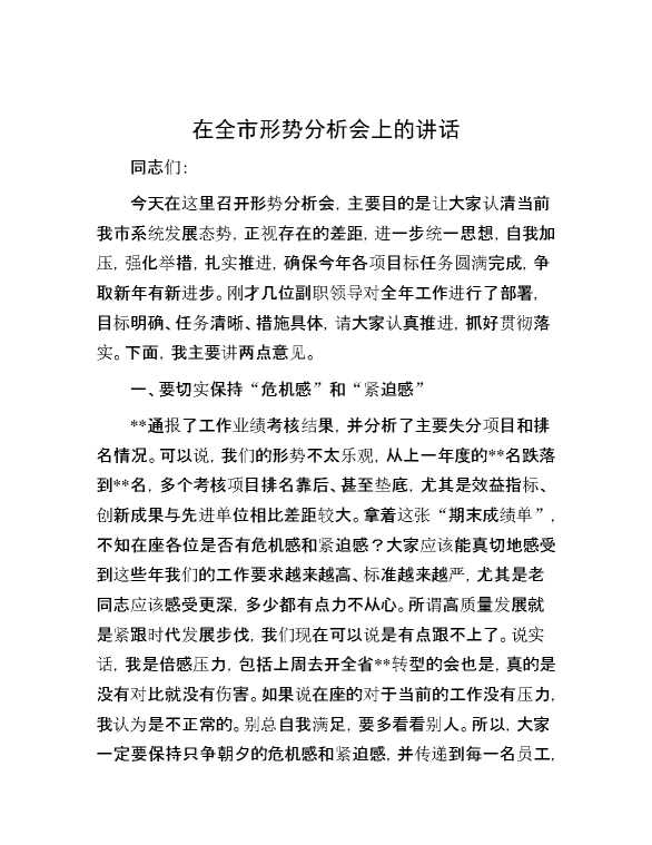 在全市形势分析会上的讲话 2024-06-10 Word模板 101 购买前,请一定要先点击这里看看,欢迎持续关注,精彩模板每天推送 预览结束,本文件为word文档,一共5页,共2389字,请购买后,下载后查看 购买前,请一定要先点击这里看看,欢迎持续关注,精彩模板每天推送 资源下载下载价格29 RMBVIP免费升级VIP点击检测网盘有效后购买有任何充值和下载问题请加微信:xuexixuexi66 0 演讲发言