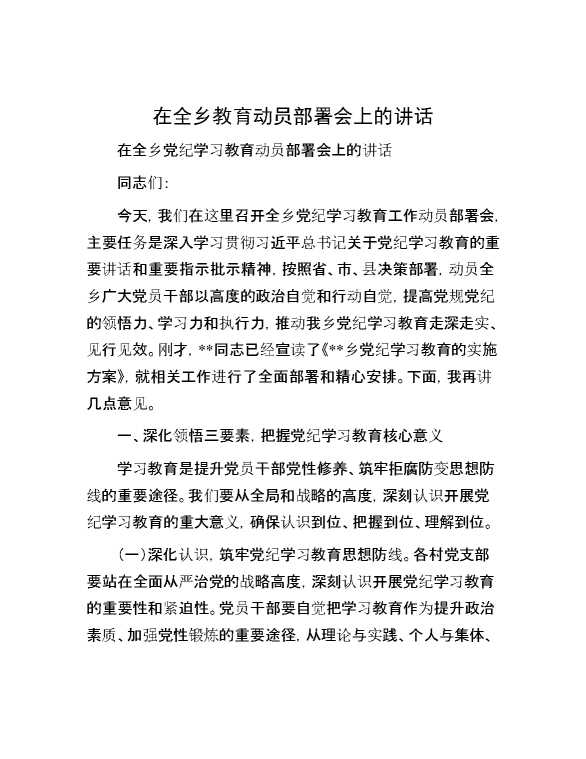 在全乡教育动员部署会上的讲话 2024-06-10 Word模板 91 购买前,请一定要先点击这里看看,欢迎持续关注,精彩模板每天推送 预览结束,本文件为word文档,一共4页,共1678字,请购买后,下载后查看 购买前,请一定要先点击这里看看,欢迎持续关注,精彩模板每天推送 资源下载下载价格29 RMBVIP免费升级VIP点击检测网盘有效后购买有任何充值和下载问题请加微信:xuexixuexi66 0 演讲发言