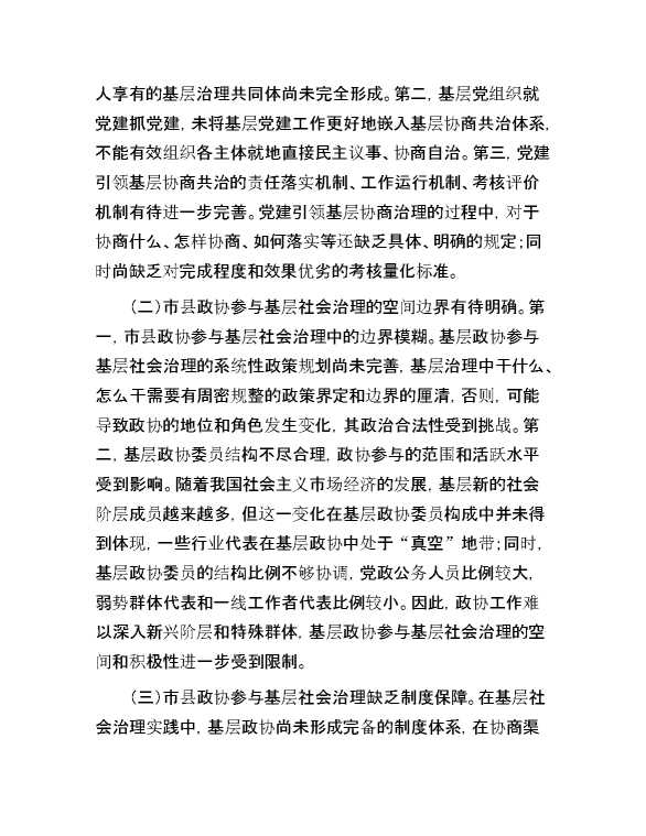 关于进一步优化政协参与基层社会治理的调研与思考 2024-06-10 Word模板 94 购买前,请一定要先点击这里看看,欢迎持续关注,精彩模板每天推送 预览结束,本文件为word文档,一共8页,共4040字,请购买后,下载后查看 购买前,请一定要先点击这里看看,欢迎持续关注,精彩模板每天推送 资源下载下载价格29 RMBVIP免费升级VIP点击检测网盘有效后购买有任何充值和下载问题请加微信:xuexixuexi66 0 理论学习