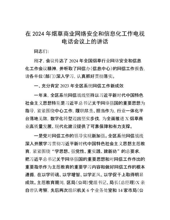 在2024年烟草商业网络安全和信息化工作电视电话会议上的讲话 2024-06-23 Word模板 99 购买前,请一定要先点击这里看看,欢迎持续关注,精彩模板每天推送 预览结束,本文件为word文档,一共8页,共3703字,请购买后,下载后查看 购买前,请一定要先点击这里看看,欢迎持续关注,精彩模板每天推送 资源下载下载价格29 RMBVIP免费升级VIP点击检测网盘有效后购买有任何充值和下载问题请加微信:xuexixuexi66 0 演讲发言