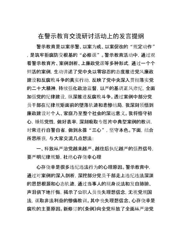 在警示教育交流研讨活动上的发言提纲 2024-06-23 Word模板 98 购买前,请一定要先点击这里看看,欢迎持续关注,精彩模板每天推送 预览结束,本文件为word文档,一共7页,共3335字,请购买后,下载后查看 购买前,请一定要先点击这里看看,欢迎持续关注,精彩模板每天推送 资源下载下载价格29 RMBVIP免费升级VIP点击检测网盘有效后购买有任何充值和下载问题请加微信:xuexixuexi66 0 演讲发言