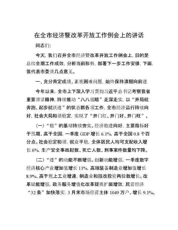 在全市经济暨改革开放工作例会上的讲话 2024-06-23 Word模板 108 购买前,请一定要先点击这里看看,欢迎持续关注,精彩模板每天推送 预览结束,本文件为word文档,一共7页,共3345字,请购买后,下载后查看 购买前,请一定要先点击这里看看,欢迎持续关注,精彩模板每天推送 资源下载下载价格29 RMBVIP免费升级VIP点击检测网盘有效后购买有任何充值和下载问题请加微信:xuexixuexi66 0 演讲发言