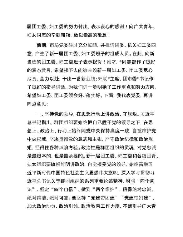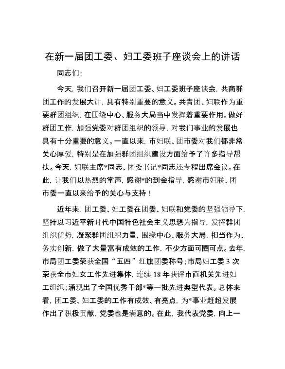 在新一届团工委、妇工委班子座谈会上的讲话 2024-06-23 Word模板 105 购买前,请一定要先点击这里看看,欢迎持续关注,精彩模板每天推送 预览结束,本文件为word文档,一共5页,共2150字,请购买后,下载后查看 购买前,请一定要先点击这里看看,欢迎持续关注,精彩模板每天推送 资源下载下载价格29 RMBVIP免费升级VIP点击检测网盘有效后购买有任何充值和下载问题请加微信:xuexixuexi66 0 演讲发言