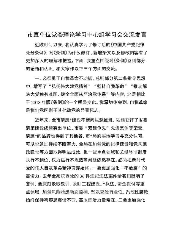 市直单位党委理论学习中心组学习会交流发言 2024-06-23 Word模板 105 购买前,请一定要先点击这里看看,欢迎持续关注,精彩模板每天推送 预览结束,本文件为word文档,一共4页,共1990字,请购买后,下载后查看 购买前,请一定要先点击这里看看,欢迎持续关注,精彩模板每天推送 资源下载下载价格29 RMBVIP免费升级VIP点击检测网盘有效后购买有任何充值和下载问题请加微信:xuexixuexi66 0 演讲发言