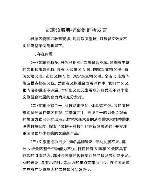文旅领域典型案例剖析发言 2024-06-23 Word模板 109 购买前,请一定要先点击这里看看,欢迎持续关注,精彩模板每天推送 预览结束,本文件为word文档,一共4页,共1549字,请购买后,下载后查看 购买前,请一定要先点击这里看看,欢迎持续关注,精彩模板每天推送 资源下载下载价格29 RMBVIP免费升级VIP点击检测网盘有效后购买有任何充值和下载问题请加微信:xuexixuexi66 0 演讲发言