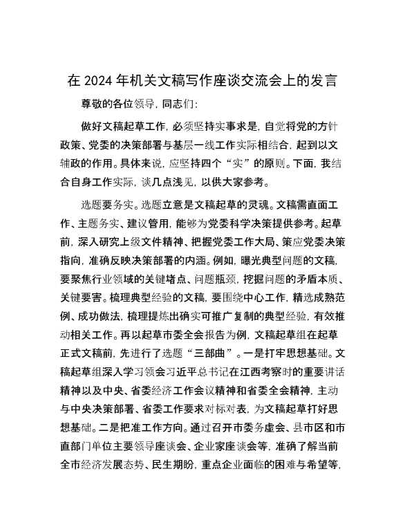 在2024年机关文稿写作座谈交流会上的发言 2024-06-23 Word模板 104 购买前,请一定要先点击这里看看,欢迎持续关注,精彩模板每天推送 预览结束,本文件为word文档,一共4页,共1908字,请购买后,下载后查看 购买前,请一定要先点击这里看看,欢迎持续关注,精彩模板每天推送 资源下载下载价格29 RMBVIP免费升级VIP点击检测网盘有效后购买有任何充值和下载问题请加微信:xuexixuexi66 0 演讲发言
