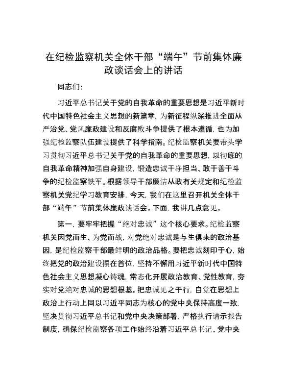 在纪检监察机关全体干部“端午”节前集体廉政谈话会上的讲话 2024-06-23 Word模板 112 购买前,请一定要先点击这里看看,欢迎持续关注,精彩模板每天推送 预览结束,本文件为word文档,一共4页,共1674字,请购买后,下载后查看 购买前,请一定要先点击这里看看,欢迎持续关注,精彩模板每天推送 资源下载下载价格29 RMBVIP免费升级VIP点击检测网盘有效后购买有任何充值和下载问题请加微信:xuexixuexi66 0 演讲发言