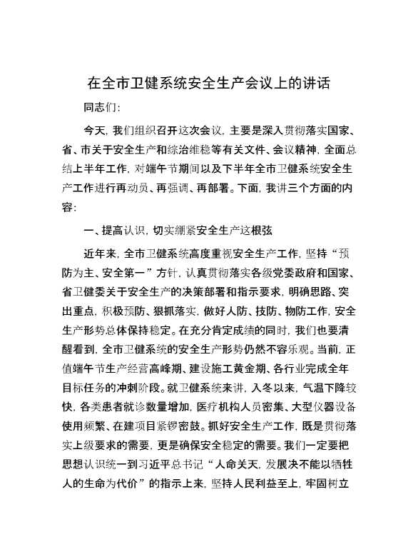 在全市卫健系统安全生产会议上的讲话 2024-06-23 Word模板 123 购买前,请一定要先点击这里看看,欢迎持续关注,精彩模板每天推送 预览结束,本文件为word文档,一共6页,共2771字,请购买后,下载后查看 购买前,请一定要先点击这里看看,欢迎持续关注,精彩模板每天推送 资源下载下载价格29 RMBVIP免费升级VIP点击检测网盘有效后购买有任何充值和下载问题请加微信:xuexixuexi66 0 演讲发言