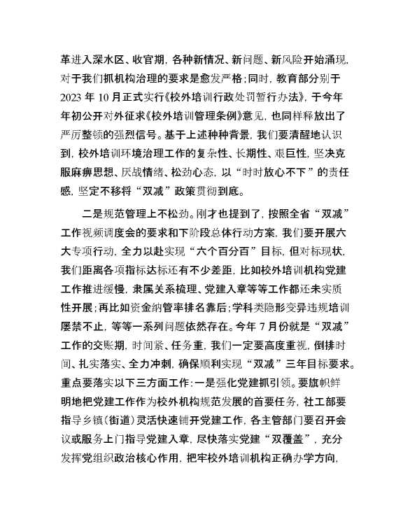 在市“双减”校外培训环境治理工作推进会的讲话参考 2024-06-23 Word模板 114 购买前,请一定要先点击这里看看,欢迎持续关注,精彩模板每天推送 预览结束,本文件为word文档,一共6页,共2807字,请购买后,下载后查看 购买前,请一定要先点击这里看看,欢迎持续关注,精彩模板每天推送 资源下载下载价格29 RMBVIP免费升级VIP点击检测网盘有效后购买有任何充值和下载问题请加微信:xuexixuexi66 0 演讲发言
