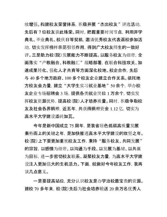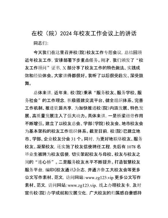 在校(院)2024年校友工作会议上的讲话 2024-06-23 Word模板 112 购买前,请一定要先点击这里看看,欢迎持续关注,精彩模板每天推送 预览结束,本文件为word文档,一共7页,共3527字,请购买后,下载后查看 购买前,请一定要先点击这里看看,欢迎持续关注,精彩模板每天推送 资源下载下载价格29 RMBVIP免费升级VIP点击检测网盘有效后购买有任何充值和下载问题请加微信:xuexixuexi66 0 演讲发言