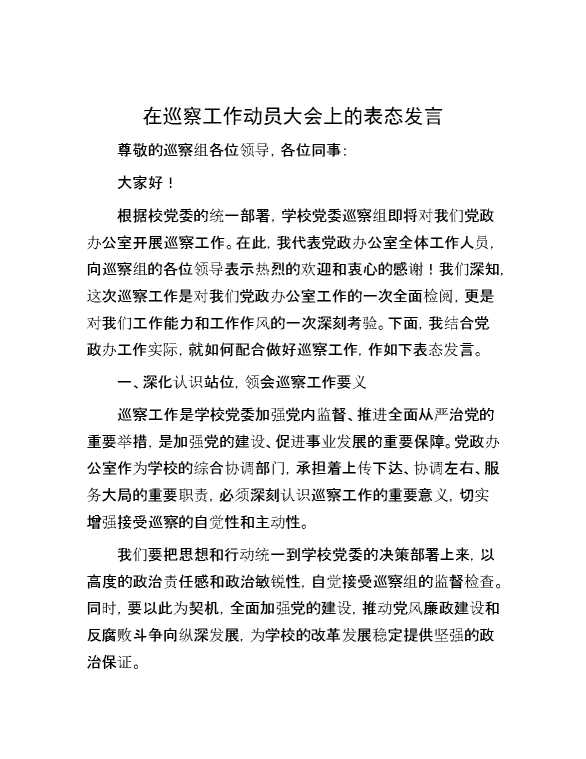 在巡察工作动员大会上的表态发言 2024-06-23 Word模板 113 购买前,请一定要先点击这里看看,欢迎持续关注,精彩模板每天推送 预览结束,本文件为word文档,一共3页,共1308字,请购买后,下载后查看 购买前,请一定要先点击这里看看,欢迎持续关注,精彩模板每天推送 资源下载下载价格29 RMBVIP免费升级VIP点击检测网盘有效后购买有任何充值和下载问题请加微信:xuexixuexi66 0 演讲发言