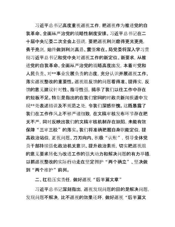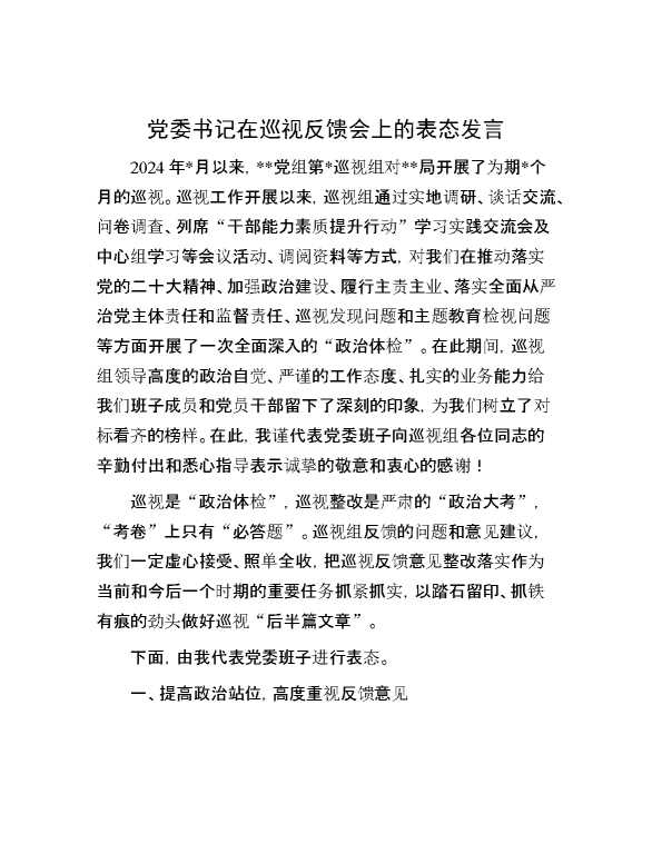 党委书记在巡视反馈会上的表态发言 2024-06-23 Word模板 120 购买前,请一定要先点击这里看看,欢迎持续关注,精彩模板每天推送 预览结束,本文件为word文档,一共5页,共2430字,请购买后,下载后查看 购买前,请一定要先点击这里看看,欢迎持续关注,精彩模板每天推送 资源下载下载价格29 RMBVIP免费升级VIP点击检测网盘有效后购买有任何充值和下载问题请加微信:xuexixuexi66 0 演讲发言