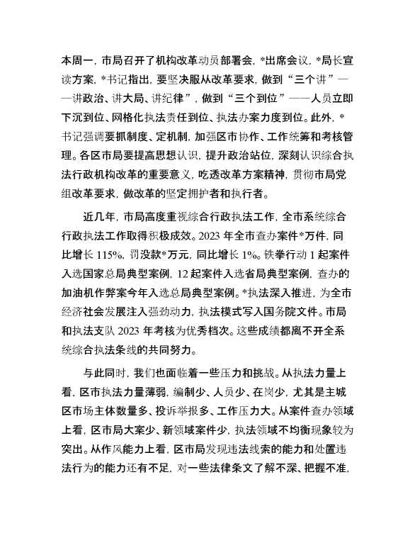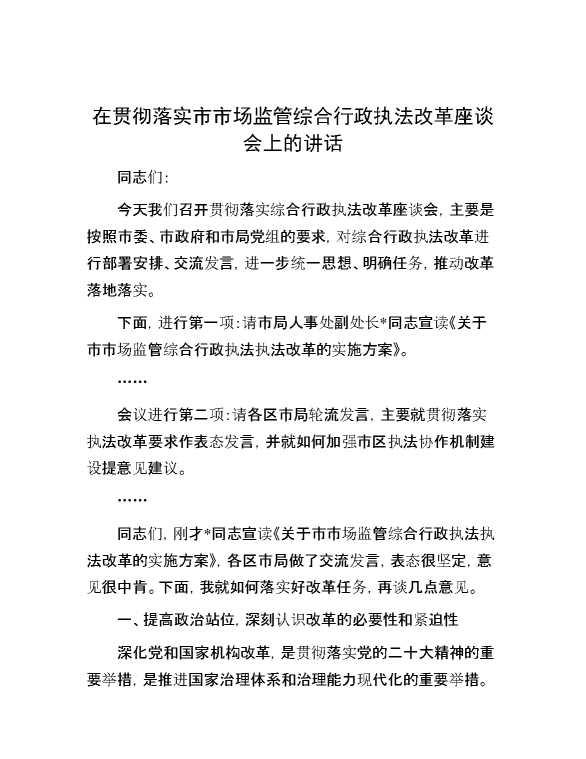 在贯彻落实市市场监管综合行政执法改革座谈会上的讲话 2024-06-26 Word模板 85 购买前,请一定要先点击这里看看,欢迎持续关注,精彩模板每天推送 预览结束,本文件为word文档,一共7页,共3073字,请购买后,下载后查看 购买前,请一定要先点击这里看看,欢迎持续关注,精彩模板每天推送 资源下载下载价格29 RMBVIP免费升级VIP点击检测网盘有效后购买有任何充值和下载问题请加微信:xuexixuexi66 0 演讲发言