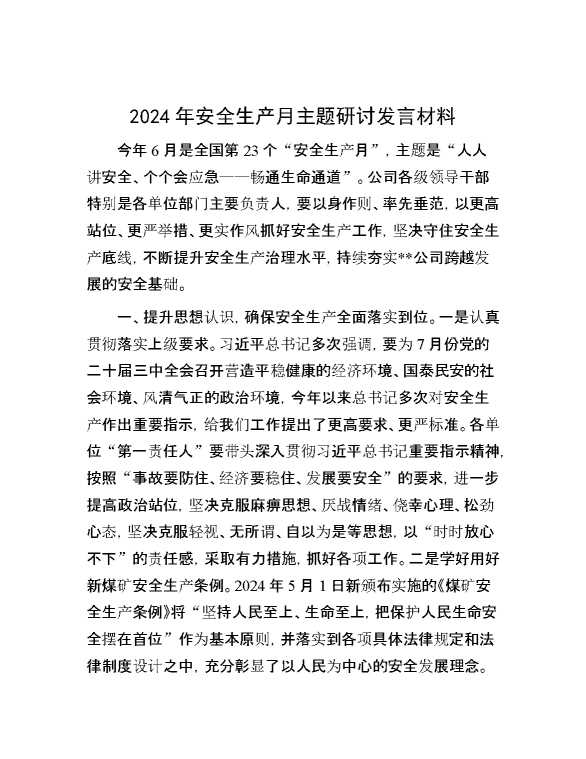 2024年安全生产月主题研讨发言材料 2024-06-26 Word模板 84 购买前,请一定要先点击这里看看,欢迎持续关注,精彩模板每天推送 预览结束,本文件为word文档,一共4页,共1927字,请购买后,下载后查看 购买前,请一定要先点击这里看看,欢迎持续关注,精彩模板每天推送 资源下载下载价格29 RMBVIP免费升级VIP点击检测网盘有效后购买有任何充值和下载问题请加微信:xuexixuexi66 0 演讲发言