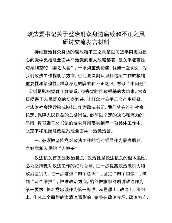 政法委书记关于整治群众身边腐败和不正之风研讨交流发言材料 2024-06-26 Word模板 80 购买前,请一定要先点击这里看看,欢迎持续关注,精彩模板每天推送 预览结束,本文件为word文档,一共4页,共1962字,请购买后,下载后查看 购买前,请一定要先点击这里看看,欢迎持续关注,精彩模板每天推送 资源下载下载价格29 RMBVIP免费升级VIP点击检测网盘有效后购买有任何充值和下载问题请加微信:xuexixuexi66 0 演讲发言