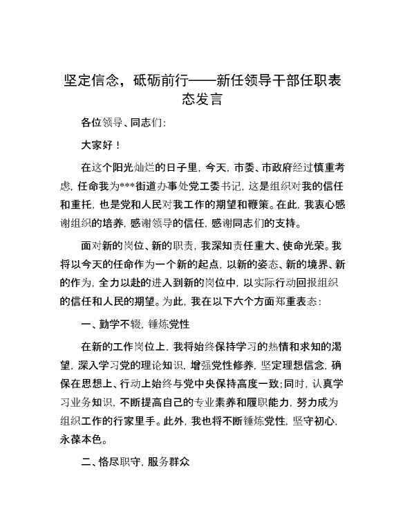 坚定信念,砥砺前行——新任领导干部任职表态发言 2024-06-26 Word模板 81 购买前,请一定要先点击这里看看,欢迎持续关注,精彩模板每天推送 预览结束,本文件为word文档,一共3页,共1186字,请购买后,下载后查看 购买前,请一定要先点击这里看看,欢迎持续关注,精彩模板每天推送 资源下载下载价格29 RMBVIP免费升级VIP点击检测网盘有效后购买有任何充值和下载问题请加微信:xuexixuexi66 0 演讲发言