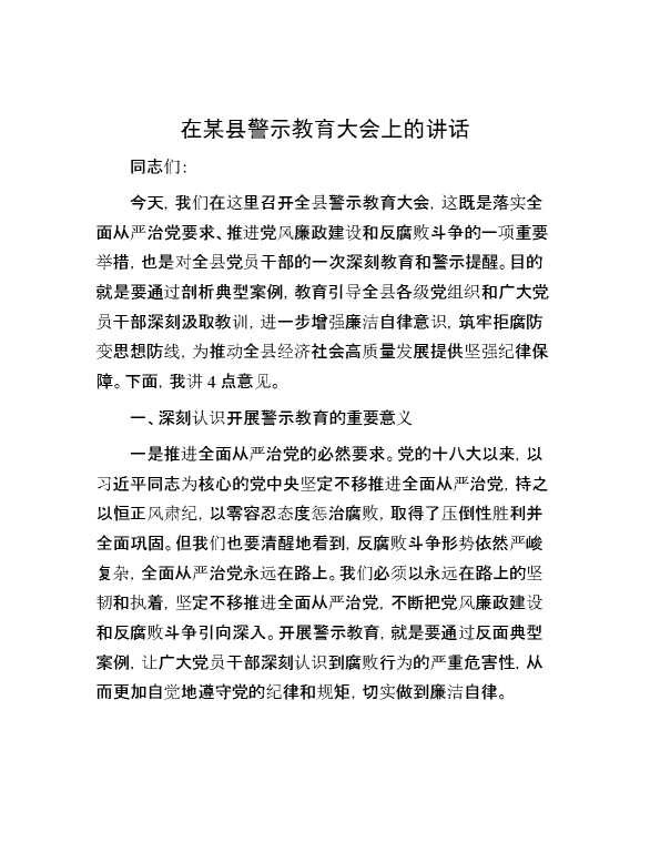 在某县警示教育大会上的讲话 2024-06-26 Word模板 82 购买前,请一定要先点击这里看看,欢迎持续关注,精彩模板每天推送 预览结束,本文件为word文档,一共5页,共2349字,请购买后,下载后查看 购买前,请一定要先点击这里看看,欢迎持续关注,精彩模板每天推送 资源下载下载价格29 RMBVIP免费升级VIP点击检测网盘有效后购买有任何充值和下载问题请加微信:xuexixuexi66 0 演讲发言