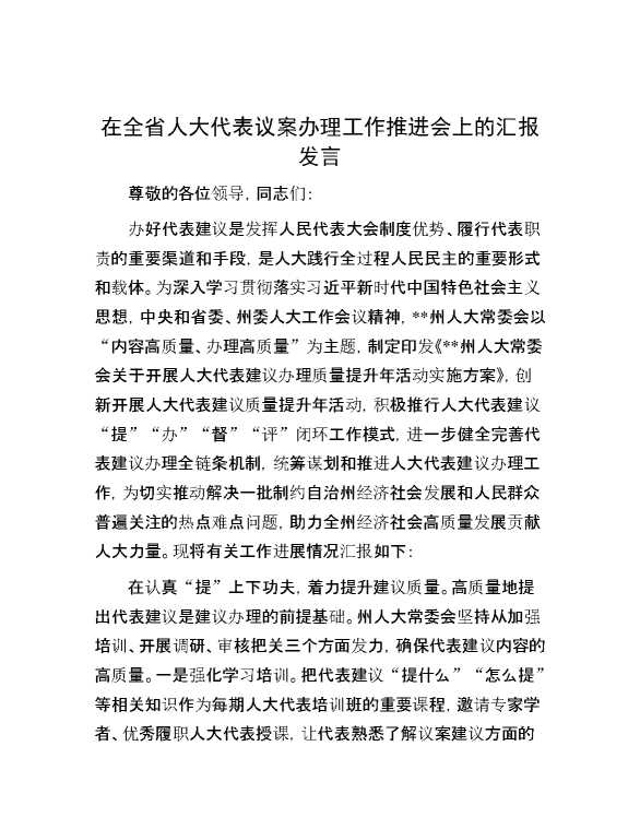 在全省人大代表议案办理工作推进会上的汇报发言 2024-06-26 Word模板 106 购买前,请一定要先点击这里看看,欢迎持续关注,精彩模板每天推送 预览结束,本文件为word文档,一共4页,共2011字,请购买后,下载后查看 购买前,请一定要先点击这里看看,欢迎持续关注,精彩模板每天推送 资源下载下载价格29 RMBVIP免费升级VIP点击检测网盘有效后购买有任何充值和下载问题请加微信:xuexixuexi66 0 演讲发言