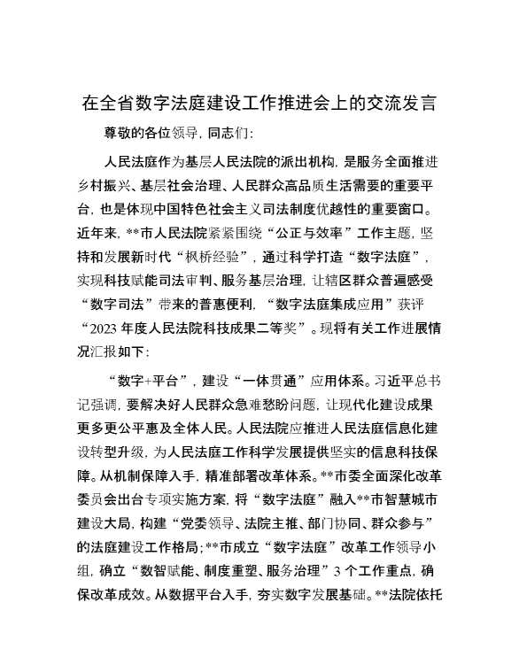 在全省数字法庭建设工作推进会上的交流发言 2024-06-26 Word模板 104 购买前,请一定要先点击这里看看,欢迎持续关注,精彩模板每天推送 预览结束,本文件为word文档,一共5页,共2014字,请购买后,下载后查看 购买前,请一定要先点击这里看看,欢迎持续关注,精彩模板每天推送 资源下载下载价格29 RMBVIP免费升级VIP点击检测网盘有效后购买有任何充值和下载问题请加微信:xuexixuexi66 0 演讲发言