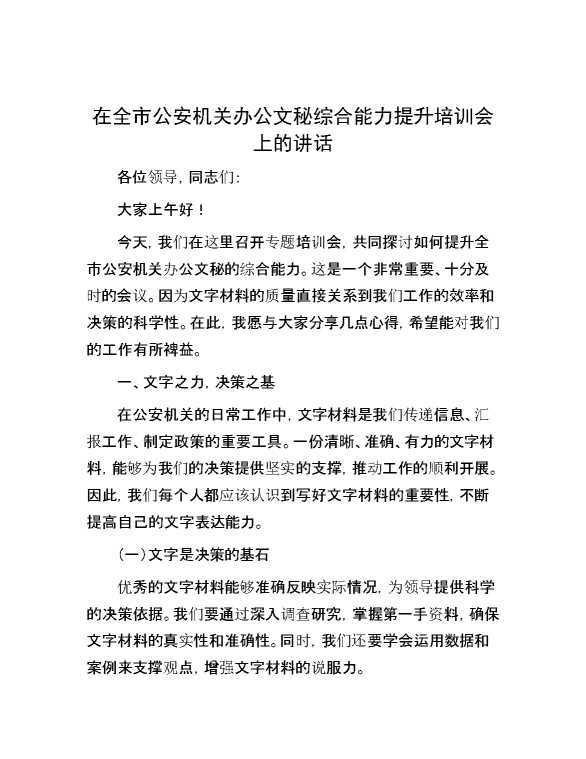 在全市公安机关办公文秘综合能力提升培训会上的讲话 2024-06-26 Word模板 105 购买前,请一定要先点击这里看看,欢迎持续关注,精彩模板每天推送 预览结束,本文件为word文档,一共4页,共1296字,请购买后,下载后查看 购买前,请一定要先点击这里看看,欢迎持续关注,精彩模板每天推送 资源下载下载价格29 RMBVIP免费升级VIP点击检测网盘有效后购买有任何充值和下载问题请加微信:xuexixuexi66 0 演讲发言