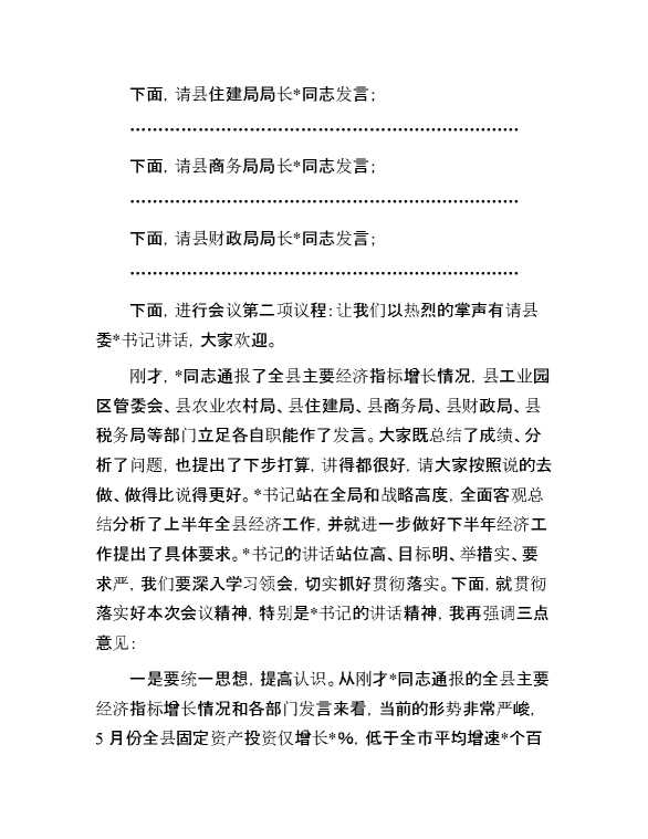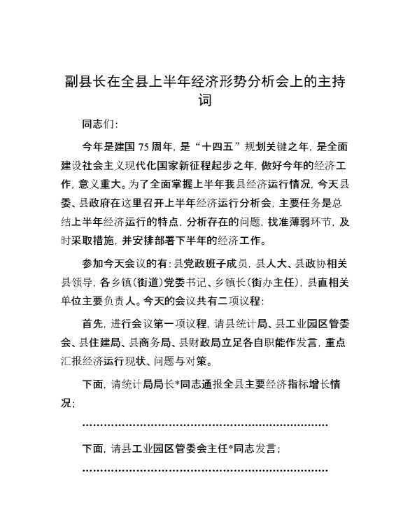 副县长在全县上半年经济形势分析会上的主持词 2024-06-26 Word模板 107 购买前,请一定要先点击这里看看,欢迎持续关注,精彩模板每天推送 预览结束,本文件为word文档,一共4页,共1739字,请购买后,下载后查看 购买前,请一定要先点击这里看看,欢迎持续关注,精彩模板每天推送 资源下载下载价格29 RMBVIP免费升级VIP点击检测网盘有效后购买有任何充值和下载问题请加微信:xuexixuexi66 0 演讲发言