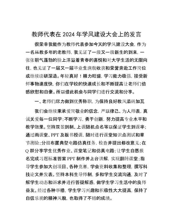 教师代表在2024年学风建设大会上的发言 2024-06-26 Word模板 111 购买前,请一定要先点击这里看看,欢迎持续关注,精彩模板每天推送 预览结束,本文件为word文档,一共3页,共1161字,请购买后,下载后查看 购买前,请一定要先点击这里看看,欢迎持续关注,精彩模板每天推送 资源下载下载价格29 RMBVIP免费升级VIP点击检测网盘有效后购买有任何充值和下载问题请加微信:xuexixuexi66 0 演讲发言