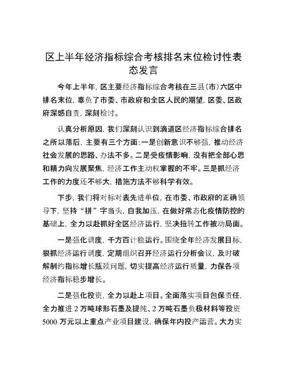区上半年经济指标综合考核排名末位检讨性表态发言 2024-06-26 Word模板 107 购买前,请一定要先点击这里看看,欢迎持续关注,精彩模板每天推送 预览结束,本文件为word文档,一共2页,共847字,请购买后,下载后查看 购买前,请一定要先点击这里看看,欢迎持续关注,精彩模板每天推送 资源下载下载价格29 RMBVIP免费升级VIP点击检测网盘有效后购买有任何充值和下载问题请加微信:xuexixuexi66 0 演讲发言