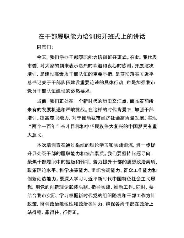 在干部履职能力培训班开班式上的讲话 2024-06-26 Word模板 109 购买前,请一定要先点击这里看看,欢迎持续关注,精彩模板每天推送 预览结束,本文件为word文档,一共3页,共1116字,请购买后,下载后查看 购买前,请一定要先点击这里看看,欢迎持续关注,精彩模板每天推送 资源下载下载价格29 RMBVIP免费升级VIP点击检测网盘有效后购买有任何充值和下载问题请加微信:xuexixuexi66 0 演讲发言