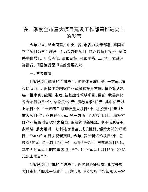 在二季度全市重大项目建设工作部署推进会上的发言 2024-06-26 Word模板 103 购买前,请一定要先点击这里看看,欢迎持续关注,精彩模板每天推送 预览结束,本文件为word文档,一共4页,共1473字,请购买后,下载后查看 购买前,请一定要先点击这里看看,欢迎持续关注,精彩模板每天推送 资源下载下载价格29 RMBVIP免费升级VIP点击检测网盘有效后购买有任何充值和下载问题请加微信:xuexixuexi66 0 演讲发言