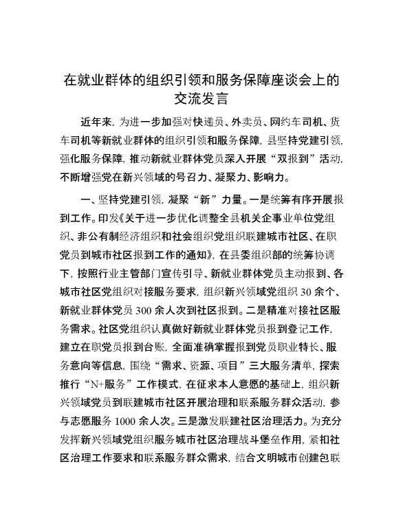 在就业群体的组织引领和服务保障座谈会上的交流发言 2024-06-26 Word模板 107 购买前,请一定要先点击这里看看,欢迎持续关注,精彩模板每天推送 预览结束,本文件为word文档,一共3页,共1376字,请购买后,下载后查看 购买前,请一定要先点击这里看看,欢迎持续关注,精彩模板每天推送 资源下载下载价格29 RMBVIP免费升级VIP点击检测网盘有效后购买有任何充值和下载问题请加微信:xuexixuexi66 0 演讲发言
