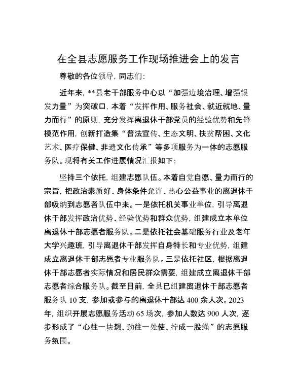 在全县志愿服务工作现场推进会上的发言 2024-06-26 Word模板 105 购买前,请一定要先点击这里看看,欢迎持续关注,精彩模板每天推送 预览结束,本文件为word文档,一共4页,共1567字,请购买后,下载后查看 购买前,请一定要先点击这里看看,欢迎持续关注,精彩模板每天推送 资源下载下载价格29 RMBVIP免费升级VIP点击检测网盘有效后购买有任何充值和下载问题请加微信:xuexixuexi66 0 演讲发言