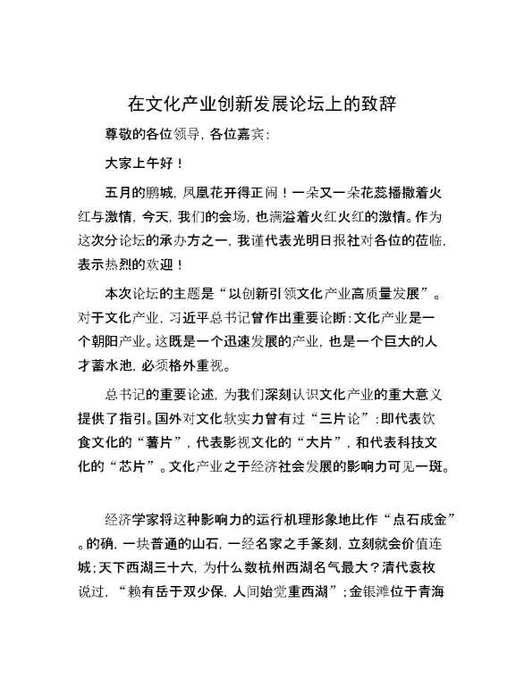 在文化产业创新发展论坛上的致辞 2024-06-26 Word模板 105 购买前,请一定要先点击这里看看,欢迎持续关注,精彩模板每天推送 预览结束,本文件为word文档,一共6页,共2421字,请购买后,下载后查看 购买前,请一定要先点击这里看看,欢迎持续关注,精彩模板每天推送 资源下载下载价格29 RMBVIP免费升级VIP点击检测网盘有效后购买有任何充值和下载问题请加微信:xuexixuexi66 0 演讲发言