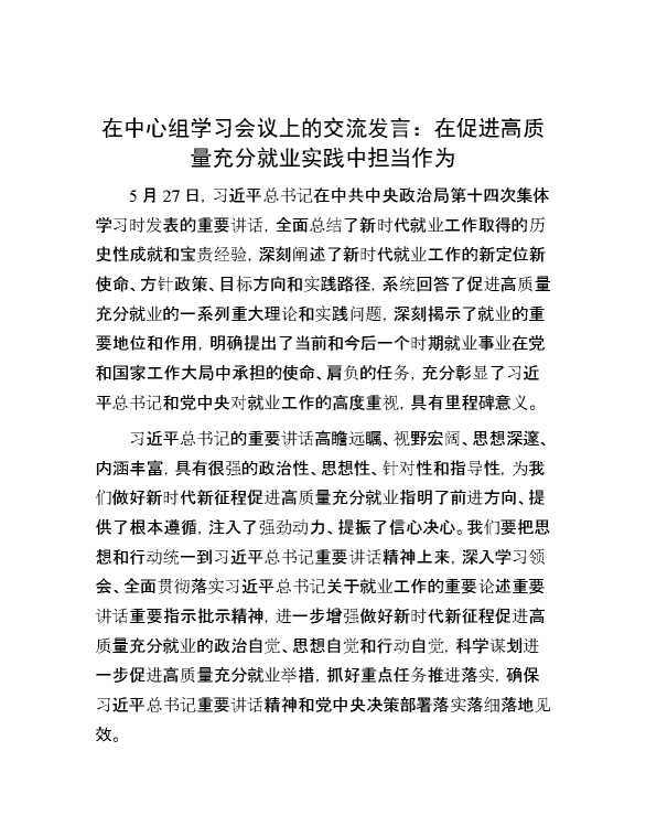在中心组学习会议上的交流发言:在促进高质量充分就业实践中担当作为 2024-06-26 Word模板 110 购买前,请一定要先点击这里看看,欢迎持续关注,精彩模板每天推送 预览结束,本文件为word文档,一共3页,共1378字,请购买后,下载后查看 购买前,请一定要先点击这里看看,欢迎持续关注,精彩模板每天推送 资源下载下载价格29 RMBVIP免费升级VIP点击检测网盘有效后购买有任何充值和下载问题请加微信:xuexixuexi66 0 演讲发言