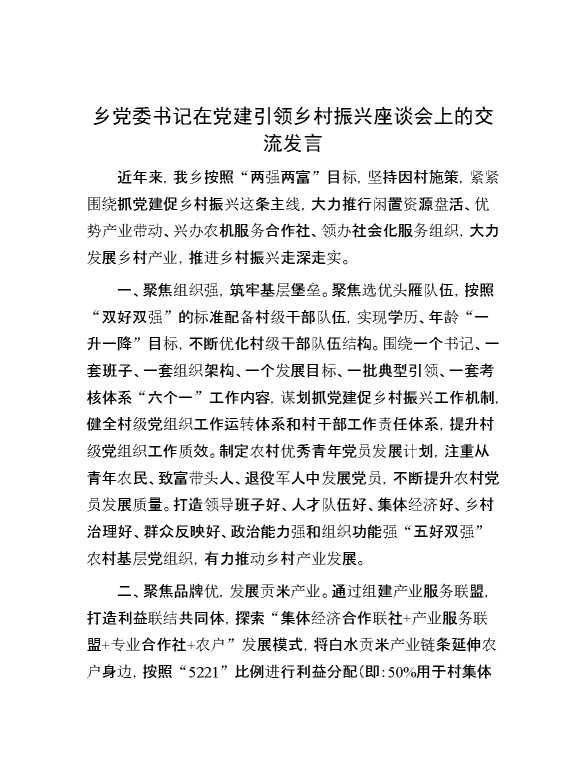 乡党委书记在党建引领乡村振兴座谈会上的交流发言 2024-06-26 Word模板 106 购买前,请一定要先点击这里看看,欢迎持续关注,精彩模板每天推送 预览结束,本文件为word文档,一共3页,共1280字,请购买后,下载后查看 购买前,请一定要先点击这里看看,欢迎持续关注,精彩模板每天推送 资源下载下载价格29 RMBVIP免费升级VIP点击检测网盘有效后购买有任何充值和下载问题请加微信:xuexixuexi66 0 演讲发言