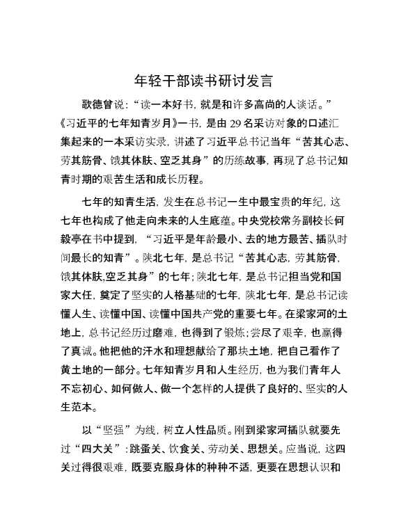 年轻干部读书研讨发言 2024-06-26 Word模板 127 购买前,请一定要先点击这里看看,欢迎持续关注,精彩模板每天推送 预览结束,本文件为word文档,一共5页,共2267字,请购买后,下载后查看 购买前,请一定要先点击这里看看,欢迎持续关注,精彩模板每天推送 资源下载下载价格29 RMBVIP免费升级VIP点击检测网盘有效后购买有任何充值和下载问题请加微信:xuexixuexi66 0 演讲发言
