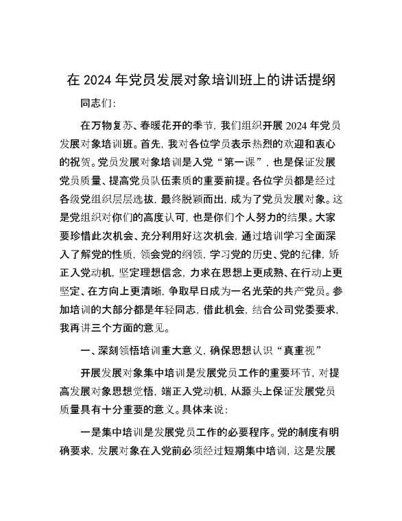 在2024年党员发展对象培训班上的讲话提纲 2024-06-26 Word模板 113 购买前,请一定要先点击这里看看,欢迎持续关注,精彩模板每天推送 预览结束,本文件为word文档,一共7页,共3288字,请购买后,下载后查看 购买前,请一定要先点击这里看看,欢迎持续关注,精彩模板每天推送 资源下载下载价格29 RMBVIP免费升级VIP点击检测网盘有效后购买有任何充值和下载问题请加微信:xuexixuexi66 0 演讲发言