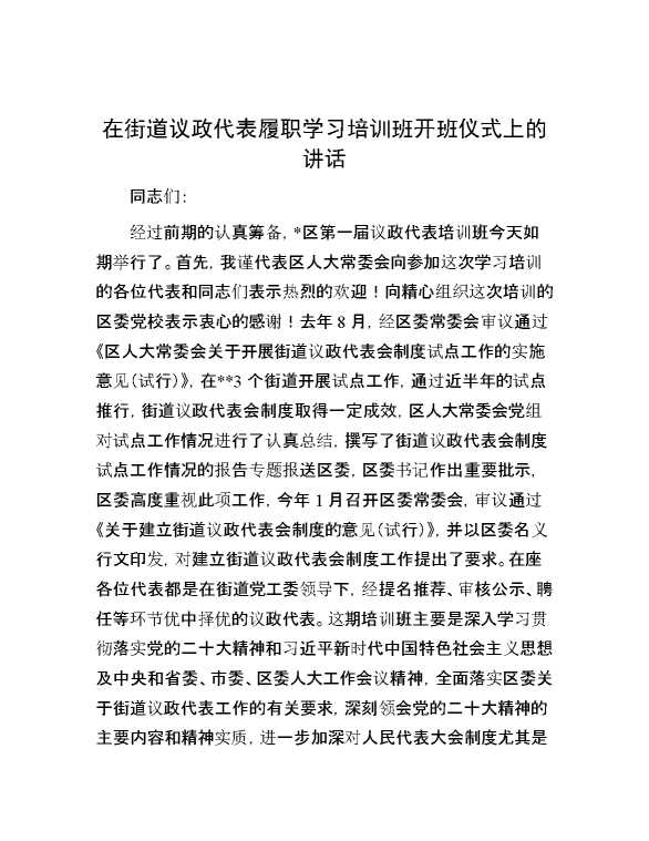 在街道议政代表履职学习培训班开班仪式上的讲话 2024-06-26 Word模板 119 购买前,请一定要先点击这里看看,欢迎持续关注,精彩模板每天推送 预览结束,本文件为word文档,一共9页,共4215字,请购买后,下载后查看 购买前,请一定要先点击这里看看,欢迎持续关注,精彩模板每天推送 资源下载下载价格29 RMBVIP免费升级VIP点击检测网盘有效后购买有任何充值和下载问题请加微信:xuexixuexi66 0 演讲发言