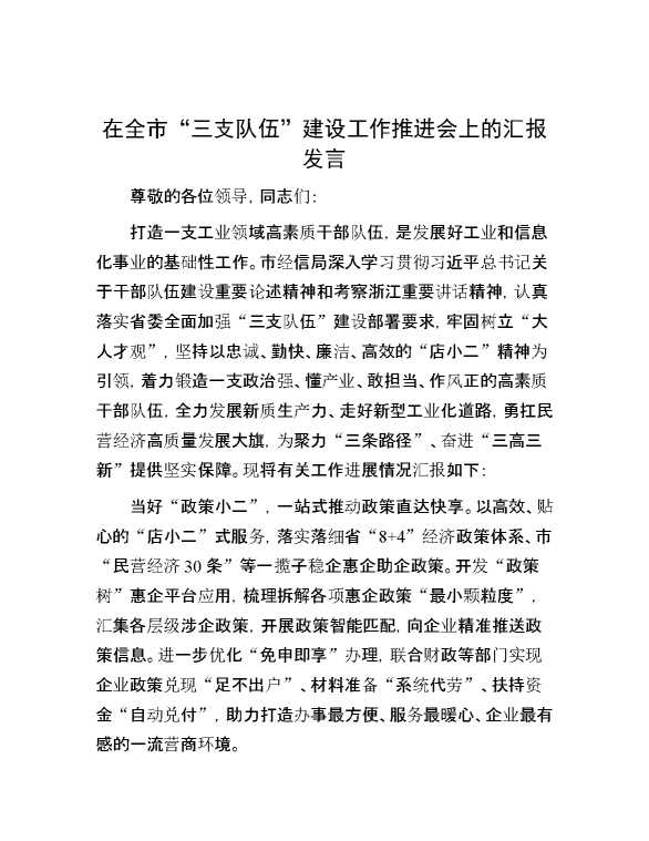 在全市“三支队伍”建设工作推进会上的汇报发言 2024-06-26 Word模板 111 购买前,请一定要先点击这里看看,欢迎持续关注,精彩模板每天推送 预览结束,本文件为word文档,一共3页,共1189字,请购买后,下载后查看 购买前,请一定要先点击这里看看,欢迎持续关注,精彩模板每天推送 资源下载下载价格29 RMBVIP免费升级VIP点击检测网盘有效后购买有任何充值和下载问题请加微信:xuexixuexi66 0 演讲发言