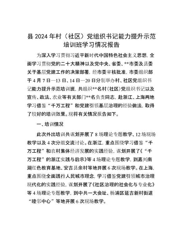 县2024年村(社区)党组织书记能力提升示范培训班学习情况报告 2024-07-01 Word模板 87 购买前,请一定要先点击这里看看,欢迎持续关注,精彩模板每天推送 预览结束,本文件为word文档,一共13页,共6451字,请购买后,下载后查看 购买前,请一定要先点击这里看看,欢迎持续关注,精彩模板每天推送 资源下载下载价格29 RMBVIP免费升级VIP点击检测网盘有效后购买有任何充值和下载问题请加微信:xuexixuexi66 0 总结汇报