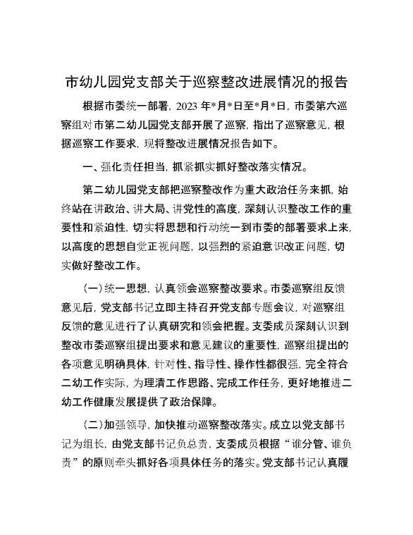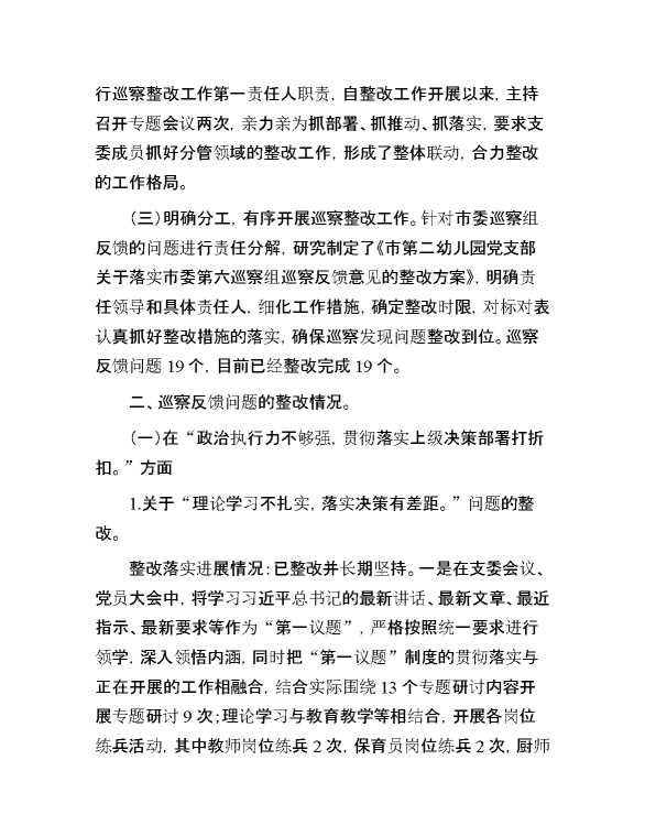 市幼儿园党支部关于巡察整改进展情况的报告 2024-07-01 Word模板 86 购买前,请一定要先点击这里看看,欢迎持续关注,精彩模板每天推送 预览结束,本文件为word文档,一共9页,共3910字,请购买后,下载后查看 购买前,请一定要先点击这里看看,欢迎持续关注,精彩模板每天推送 资源下载下载价格29 RMBVIP免费升级VIP点击检测网盘有效后购买有任何充值和下载问题请加微信:xuexixuexi66 0 总结汇报