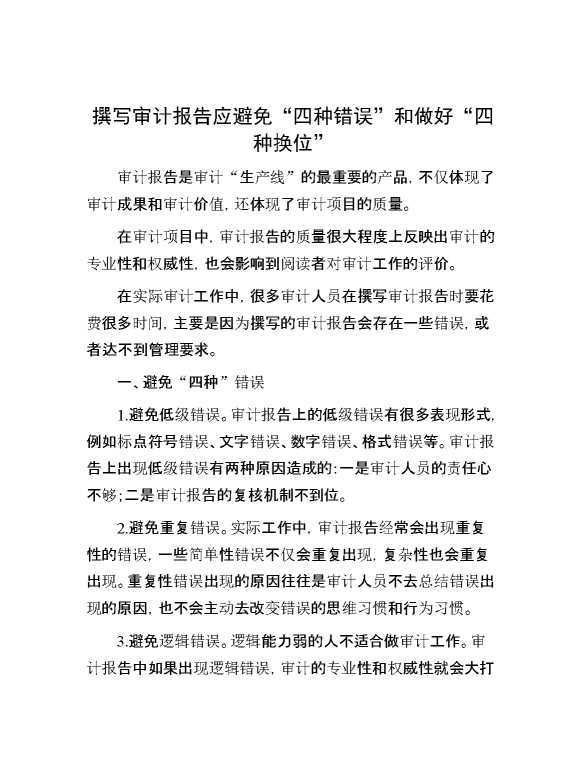 撰写审计报告应避免“四种错误”和做好“四种换位” 2024-07-01 Word模板 138 购买前,请一定要先点击这里看看,欢迎持续关注,精彩模板每天推送 预览结束,本文件为word文档,一共3页,共1239字,请购买后,下载后查看 购买前,请一定要先点击这里看看,欢迎持续关注,精彩模板每天推送 资源下载下载价格29 RMBVIP免费升级VIP点击检测网盘有效后购买有任何充值和下载问题请加微信:xuexixuexi66 0 总结汇报