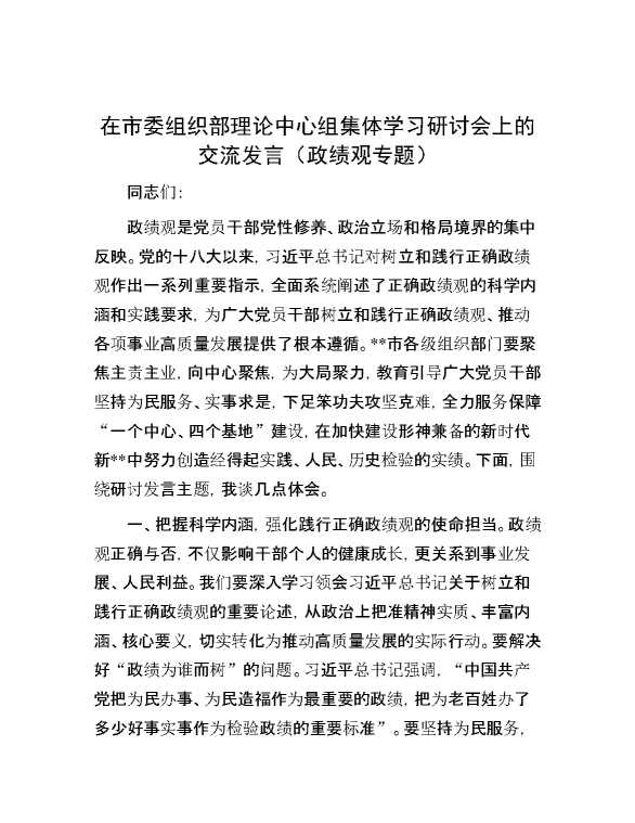 在市委组织部理论中心组集体学习研讨会上的交流发言(政绩观专题) 2024-07-04 Word模板 110 购买前,请一定要先点击这里看看,欢迎持续关注,精彩模板每天推送 预览结束,本文件为word文档,一共5页,共2327字,请购买后,下载后查看 购买前,请一定要先点击这里看看,欢迎持续关注,精彩模板每天推送 资源下载下载价格29 RMBVIP免费升级VIP点击检测网盘有效后购买有任何充值和下载问题请加微信:xuexixuexi66 0 演讲发言