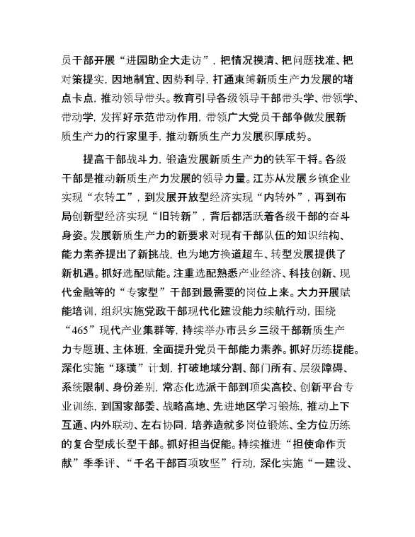 组织部长在市委理论学习中心组集体学习会上的交流发言(新质生产力专题) 2024-07-04 Word模板 113 购买前,请一定要先点击这里看看,欢迎持续关注,精彩模板每天推送 预览结束,本文件为word文档,一共4页,共1904字,请购买后,下载后查看 购买前,请一定要先点击这里看看,欢迎持续关注,精彩模板每天推送 资源下载下载价格29 RMBVIP免费升级VIP点击检测网盘有效后购买有任何充值和下载问题请加微信:xuexixuexi66 0 演讲发言