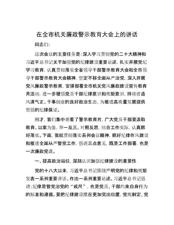 在全市机关廉政警示教育大会上的讲话 2024-07-04 Word模板 132 购买前,请一定要先点击这里看看,欢迎持续关注,精彩模板每天推送 预览结束,本文件为word文档,一共12页,共5631字,请购买后,下载后查看 购买前,请一定要先点击这里看看,欢迎持续关注,精彩模板每天推送 资源下载下载价格29 RMBVIP免费升级VIP点击检测网盘有效后购买有任何充值和下载问题请加微信:xuexixuexi66 0 演讲发言