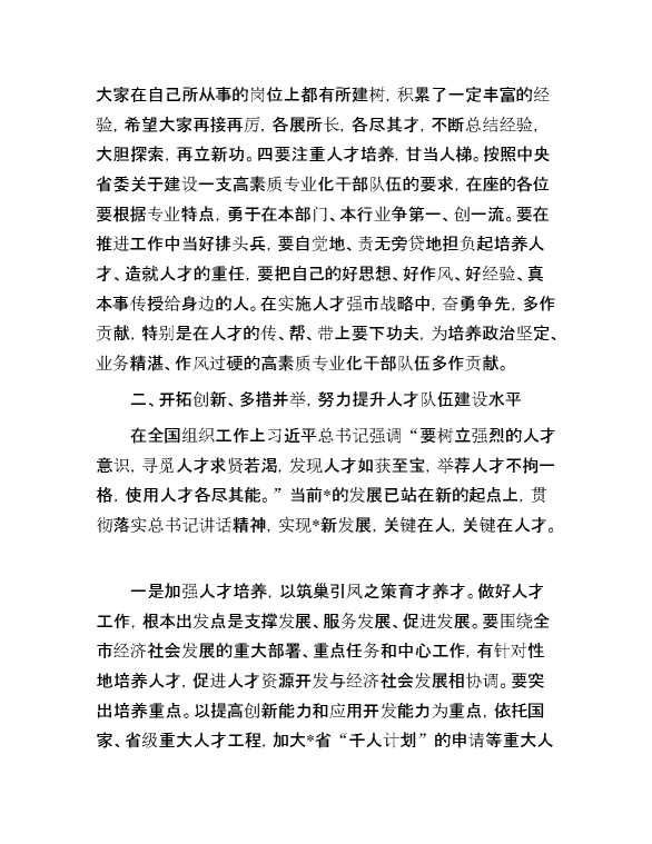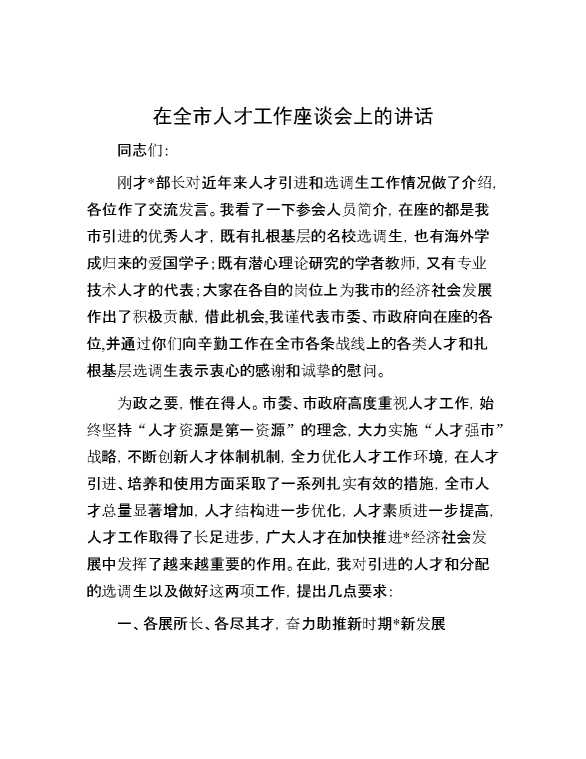 在全市人才工作座谈会上的讲话 2024-07-04 Word模板 130 购买前,请一定要先点击这里看看,欢迎持续关注,精彩模板每天推送 预览结束,本文件为word文档,一共10页,共5038字,请购买后,下载后查看 购买前,请一定要先点击这里看看,欢迎持续关注,精彩模板每天推送 资源下载下载价格29 RMBVIP免费升级VIP点击检测网盘有效后购买有任何充值和下载问题请加微信:xuexixuexi66 0 演讲发言